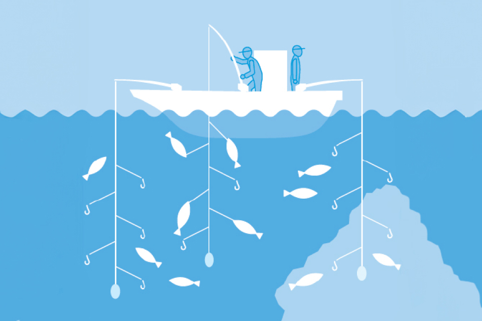 この漁法は、「ボンテン」と呼ばれる一本の旗竿を起点とし、そこから枝針のついた幹縄(みきなわ)を水深およそ500メートルの深さに沈めて、主にメカジキやメバチマグロを狙うものです。