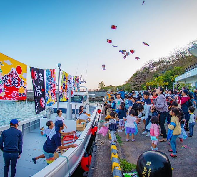 - 見送り式(港にて、高校進学などで島を離れる子供や教員の離任式)